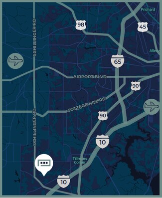 Located between Three Knotch Rd. and Theodore Dawes Rd. Less than two miles from I-10 (Exit 13) and easily accesible to US HWY 90 & Schillinger Rd.