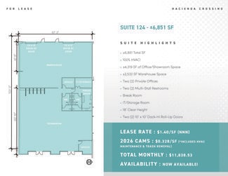 • 2026 CAMs: $0.328/SF (*INCLUDES HVAC MAINTENANCE & TRASH REMOVAL)
