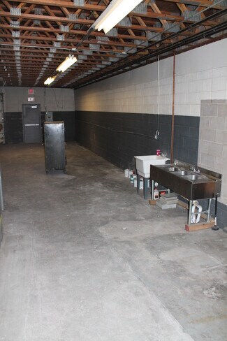 Warehouse has large overhead door and entry door accessible from the rear parking lot, and can also be accessed from the retail side (door separates the two spaces).