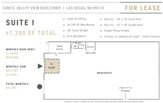 Valley View Industrial Center is a multi-tenant ±48K SF office/warehouse industrial project, just south of the heavily traveled roads (Tropicana Avenue & Flamingo Road) with a location providing easy access to I-15, the Las Vegas “Strip”, Convention Centers and Harry Reid International Airport.