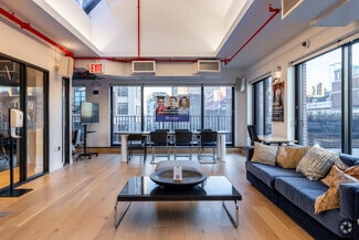 Each full office floor presents 6,658 square feet of fully furnished, move-in-ready space with private elevator landings, secure vestibules, high-exposed ceilings, fully equipped kitchens, two private water closets, and expansive windows that fill the rooms with natural light. Designed to inspire productivity, the spaces feature a combination of open workstations, private offices, and conference rooms, complemented by upscale furnishings, ergonomic desks, workstations, sofas, soundproof phone booths, and fully equipped kitchens. The 3,850-square-foot penthouse floor provides a refined interior with a stunning, private rooftop terrace furnished with tables, chairs, recliners, and loungers - perfect for the team to relax and enjoy meetings, outings, or get-togethers while taking in the breathtaking views of the New York skyline.