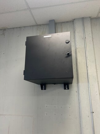 Power capabilities are robust, with 600 amps of 120/208V electrical service, complemented by compressed air lines throughout the building—well-suited for industrial and fabrication users. Additional features include a monitored alarm system for enhanced security and 22 striped on-site parking spaces for employees and visitors.