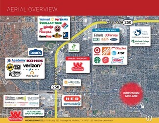 Strategically positioned along West Loop 250 N, which sees over 48,370+ vehicles per day, this location benefits from exceptional visibility and traffic exposure. The site ranks in the top 20% of Wienerschnitzel stores nationwide with strong reported sales, highlighting its excellent performance and customer demand. Midland’s rapidly growing community and robust economy further enhance the site's investment appeal. Nearby, Midland College—a 224-acre campus with over 5,400 enrolled students and 800+ employees—provides a steady customer base, along with surrounding residential neighborhoods and major employers.
