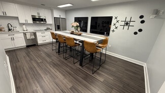 Upscale common areas including a modern kitchen, elegant lobby, and shared conference space