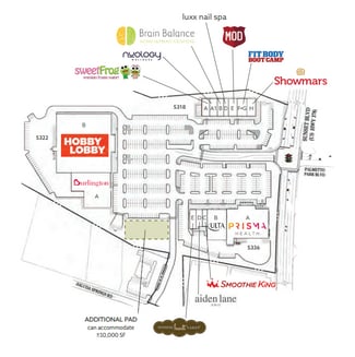 • Anchored by Hobby Lobby, Prisma Health, and Burlington.