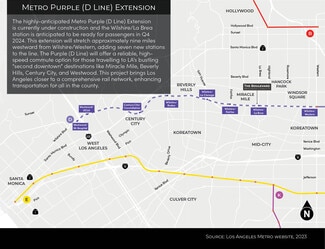 •Size: ±1,624 SF •Former Starbucks – Fully built-out 2nd-generation coffee shop space, ideal for café or quick-service concepts. •High-Visibility Branding Opportunity on Wilshire Blvd with ±85,000 daily drivers. •Situated in Boulevard on Wilshire, a luxury mixed-use development with 95 residential units. •Directly across from the future Metro D Line (Purple) Station at Wilshire/La Brea (completion expected 2025). •Steps from Museum Row (LACMA, La Brea Tar Pits, Petersen Automotive Museum). •On-site secure parking with 8 dedicated spaces •Miracle Mile location offers strong daytime population and affluent demographics.