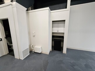 Industrial condo with 10' Drive in Door, 1100 SF of total inside space, 45' x 12' warehouse space with optional front retail office room, hallway or kitchen with waterworks, and private bathroom. Clear height is 13' 6"