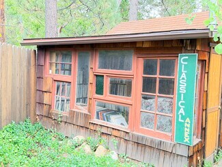 Rare opportunity in the heart of Idyllwild-this versatile commercial property, currently occupied by The Record Collector, offers four unique units and six total structures on a 0.28-acre lot. The main building welcomes you with a prominent storefront, an inviting front room with fireplace, 3/4 bathroom, and a kitchen/dining area-perfect for retail or customer service. Just behind, a spacious workshop features a main area, side room, and loft, ideal for creative or operational needs. Additional structures include a carport-style outbuilding and a two-room storage shed for added flexibility. The Classical Annex stands out with its open layout, fireplace, and a dramatic wall of windows, providing abundant natural light. The main house features one bedroom, a full bath with separate tub and shower, large eat-in kitchen, laundry room, and a living area anchored by a striking rock fireplace. Oversized attic offers extra storage or workspace. Built in 1952, connected to sewer, and totaling 12,197 sq ft-ideal for entrepreneurs, investors, or creatives seeking a unique mountain property.