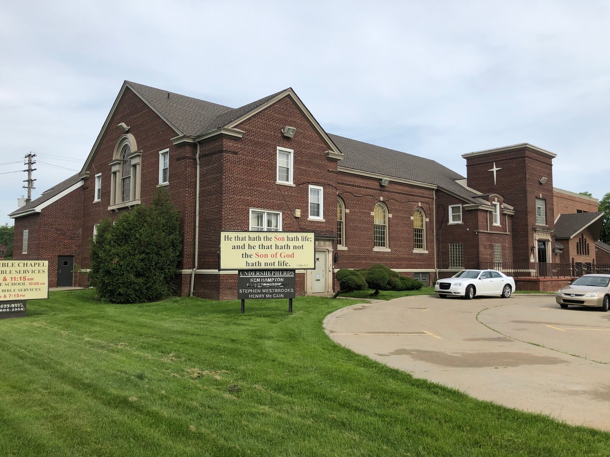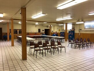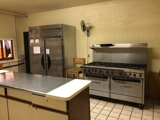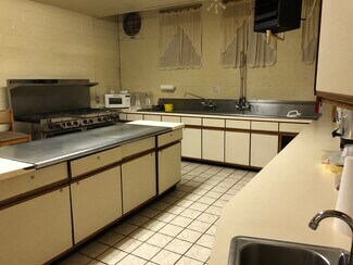 • Kitchen, fellowship hall, two parking lots.
