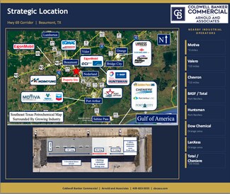 New Opportunity right off Hwy 69 Corridor Property can be divided and leased separately • 18,000 SF mix of warehouse and office • Access available from Avenue A (W. Port Arthur Road) and Hagner Rd. • Approximately 1000 sf office area on east end of bldg. includes reception area, privacy offices, conference room, break room and restroom. • Warehouse crest height 16’, insulated roof deck, multiple overhead doors & covered canopy work area. • Light Industrial Zoning FOR LEASE $0.50 psf. **Includes taxes and insurance**