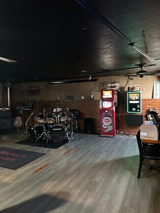 "Harleys Tavern." Business and real estate. 2300 square feet. Building with bar, kitchen, dance floor, pool table, room, and men's/women's restroom. Pool table, dart board, and juke box do not stay-lease units. Drums do not stay. Kitchen appliances stay, and table, chairs, and bar stools stay. There is a small upper level, about 200 square feet, that formerly had a bathroom that needs to be remodeled. Now just walls and studs. Heat pump-central air. 19 parking slots. Inventory included. The food truck does not stay. Owner retiring. Could be redeveloped! Great location! Located near I-75! Priced at $ 220,000.