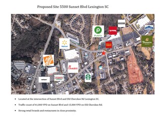 Located at the intersection of Sunset Blvd and Old Cherokee Rd, this site has great access and visibility. In the immediate area of this site (within .5 mile) there are big box retailers which include Publix, Lowes, Home Depot, Wal-Mart, Office Depot, and CVS, as well as national retail and restaurant brands such as Starbucks, AT&T, Krispy Kreme, Chick-Fil-A, and Panera Bread. Great visibility and traffic counts of 41,000 VPD on Sunset Blvd and 15,000 VPD on Old Cherokee Rd.