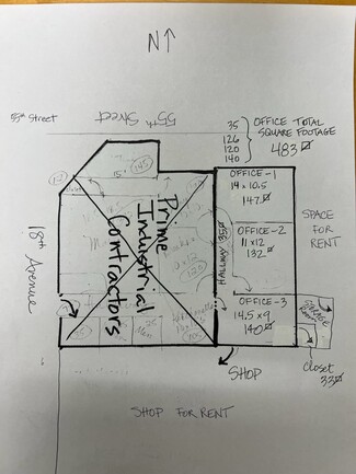 Industrial warehouse office flex space available for rent. Three offices and storage closet attached to warehouse space. Warehouse space includes one drive in automatic door and one manual dock door, plus a full bathroom. Fenced in outdoor storage area in rear of property. Actual dock needs repair if to be utilized by tenant. Listing includes four dedicated paved parking spaces plus street parking available in the Columbus Park neighborhood. ~0.5 acre yard can be utilized for additional uncovered unpaved parking to supplement four dedicated spaces in that area.