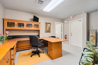 Located within The Boulevard Executive Park along Granada Boulevard in Ormond Beach, this fully furnished 780 SF Class B office suite is positioned on the second floor and offers a functional, professional layout ideal for a wide range of business uses. The suite features a welcoming reception area, three private office spaces, and a private bathroom, creating an efficient and comfortable work environment.