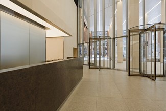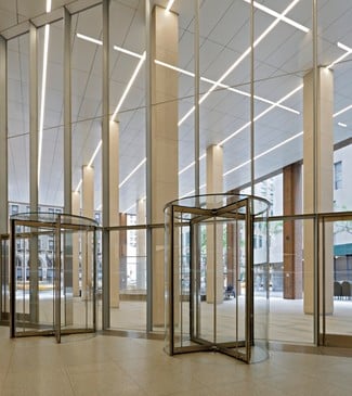 560 Lexington Avenue was designed by The Eggers Group and opened in 1981. Skidmore, Owings & Merrill redesigned the lobby, plaza, elevators, and subway entrance, all crafted from limestone, white granite, and stainless steel. This Plaza District tower, with floor plates ranging from 18,000 to 21,000 square feet, is flanked by two National Historic Landmarks: the General Electric Building and St. Bartholomew's Church.
