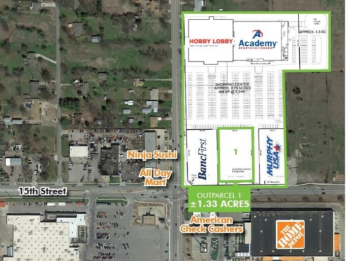This out parcel is positioned in front of the new Hobby Lobby and Academy Sports. This pad is available for development in this newly planned retail destination, along with Walmart Supercenter and The Home Depot, also positioned at the high-traffic intersection.
