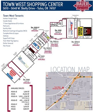 Town West Shopping Center (±158,735 SF) is a high-visibility retail destination with easy access from I-44 at W. 49th Street. The center captures strong daily traffic from Tulsa and surrounding communities and offers a competitive cost structure. A complementary tenant mix makes Town West well suited for both local and national retailers seeking visibility and convenience.