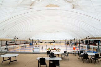 This is your chance to own an incredible sports facility with over 50,000 SF of youth basketball courts inside, a 3/4-mile track, a concession stand, locker rooms, office space, lounge space, and viewing areas. The Sports Dome is a pressurized facility with 50' ceiling clears inside the space, making it flexible for many different types of recreation users and events. The exterior of the dome boasts ±16.3-acres of land, perfect for an additional structure or for outdoor use. Five existing tennis courts outside could be used or converted to pickleball courts, lending potential for additional revenue or expansion. The lot features over 150 parking spaces and the land boasts 500 feet of frontage. The current tenant will be moving out in August 2025.