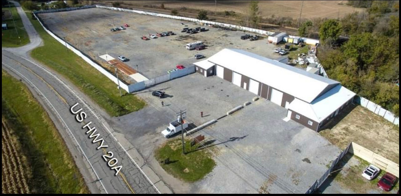 Commercial Building Repair Shop With 10344 SF with 7 plus Acres of Gravel lot fenced in for parking or storage with Truck Scale. Great location minutes away from I80 I 90 outside of Toledo OH. UNZONED. Can lease the whole property, shop and parking lot or divide it. Remote over head door 14 feet high both side of the shop.