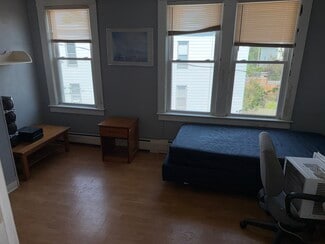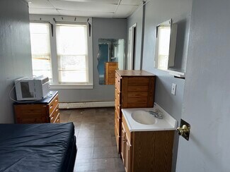 The property is arranged across two floors with eighteen bedrooms and eight bathrooms, a layout that blends single-room occupancies with administrative or office areas on the first level, while the upper floor is devoted primarily to private rooms. Shared bathrooms are located on each floor, and many of the rooms are outfitted with individual sinks. Both levels are supported by kitchen facilities that allow for shared or communal use.