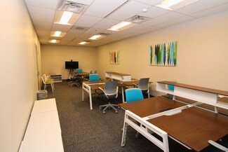 A private headquarters for growing teams who work out in the community but need a professional home base. Located inside Flywheel Coworking at the Cabarrus Center, this fully furnished Enterprise Suite is designed for teams who need collaboration space, privacy, and access to the region’s business ecosystem. 475 SF Private Office Suite • Seating for 8 teammates • Conference table seating for 5 • Fully furnished workstations • TV for presentations / training • Filing cabinets for storage • Private, secure suite with keyed access
