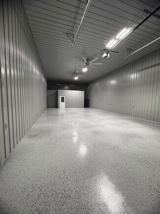 Positioned in the thriving Newburgh-Evansville corridor, this premium warehouse and office space offers a turnkey solution for businesses seeking modern infrastructure, secure access, and operational flexibility. Located just minutes from IN-66 and I-69, the property provides seamless connectivity to Evansville’s commercial districts, regional logistics routes, and the broader Tri-State area. The warehouse features 16-foot ceilings and a 60-foot depth, making it ideal for trades, equipment storage, or RV and coach housing. A fully insulated structure with epoxy floors and LED lighting ensures durability and energy efficiency, while the oversized 12’ x 14’ insulated garage door accommodates semi-truck access and 45-foot coaches with ease. Two automatic garage door openers and remotes are included for added convenience.