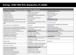 This RARE heavy commercial and industrial zoned 6.27 acre site is located in heart of the Sarasota-Bradenton MSA. The site is less than 1-mile to US-301 and 5-miles to I-75. The Heavy Commercial (HC) and Light Manufacturing (LM) zoning allows for a wide variety of commercial, industrial, and retail uses as noted in the "Zoning - Permitted Uses" picture and attachment. Please contact Jason McCormick (561-613-5293) with any questions. Manatee County Parcel ID: 1836500159