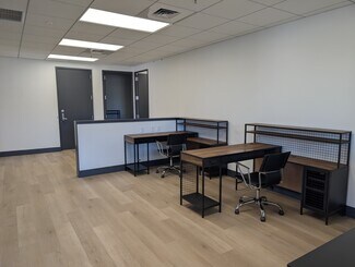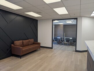 Modern, move-in-ready office suite featuring four private offices, an open bullpen area, and a welcoming entry space. The suite offers access to a shared conference room, lobby, and reception area, all fully renovated in 2025 with sleek, contemporary fixtures and finishes. Enjoy an open-concept design with glass doors and abundant natural light throughout, creating a bright and professional environment. Desks are included; however, all other furnishings and accessories shown are not part of the lease. This suite is ideal for a professional team seeking a polished office environment with access to high-end shared amenities. The stated sqft includes 334sqft conference room which is shared with adjacent tenant.