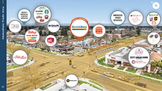 The property offers 10.5 years remaining on a corporate Dutch Bros lease with 10% rent increases every five years across the base term and options. It is positioned along Olive Avenue, one of Merced’s main retail arteries.