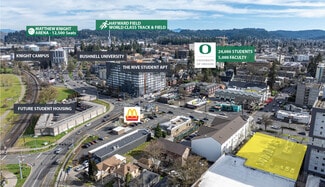 579 E. Broadway presents a rare opportunity to lease a stand-alone restaurant property in one of Eugene’s most active urban corridors. Positioned near the University of Oregon and downtown, the property is surrounded by significant student housing density, retail, and dining, with over 4,500 student beds within a three-block radius driving consistent foot traffic and demand. The 3,400 SF building sits on a large 0.50-acre parcel with C2 zoning, offering flexibility for a range of restaurant or food service concepts. The site’s high visibility, strong frontage along Broadway, and 23,000+ AADT exposure create excellent branding and customer access. Additionally, the property includes 24 on-site parking spaces—an uncommon amenity in this highly urbanized location. With immediate proximity to campus, downtown, and major student housing developments, this location is ideally suited for operators seeking strong demographics, consistent traffic patterns, and a proven dining corridor in Eugene.