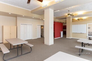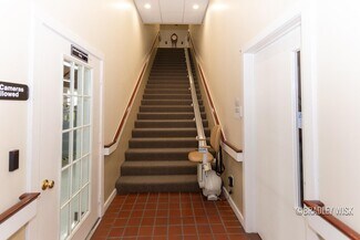 Ascend to the upstairs level to find a stunning oasis of productivity and comfort. Two full kitchens, a full bath with laundry, and several executive suites with soaring ceilings provide a sophisticated retreat for executives and employees alike.