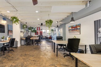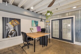 Unique creative office/retail space with mezzanine and plaza access. Great location in Greenville’s charming and vibrant arts