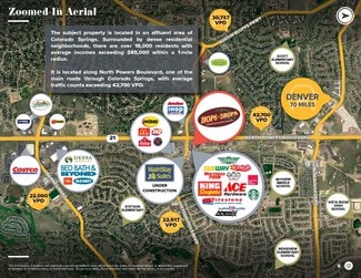 5820 Stetson Hills Blvd, Colorado Springs, CO is a free-standing building and former restaurant in the bustling Ridgeview neighborhood, just off Powers Blvd - a major commercial corridor. This site offers excellent visibility and access, making it ideal for a quick-serve restaurant. The surrounding area is densely populated with residential communities and anchored by high-traffic retailers, ensuring strong drive-by exposure.