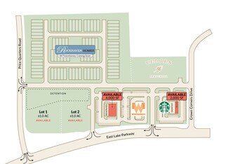 Three pads remain available at this multi-use development along East Lake Parkway. 1.3 acre to 2.1 acre pad sites available with Starbucks, Whataburger, T-Mobile, and Cedar's Preschool coming soon, and a 84-unit residential development under construction.