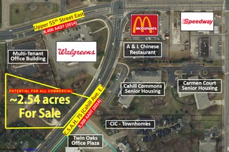Borders Walgreen's and multi-unit office building, just down from McDonald's, and across from multi-unit housing complexes and a business plaza. Lots enjoy a 4-lane county state aid highway (CSAH 75 - Cahill Ave. E.) that sees an average of 9,300 vehicle traffic daily (AADT). Potential for both lots to be combined and rezoned a single classification according to city. City water and sewer on property.