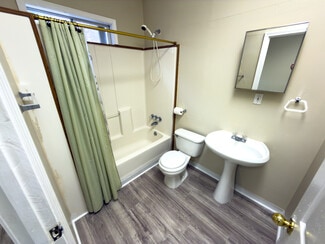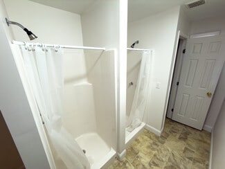The secondary wing includes seven private living quarters, five with full en-suite bathrooms. Additional communal restrooms and shower facilities are located throughout the building.