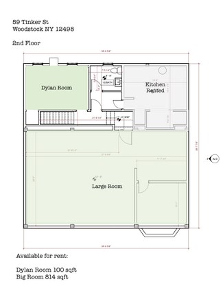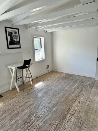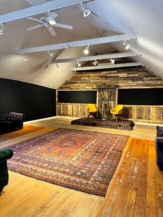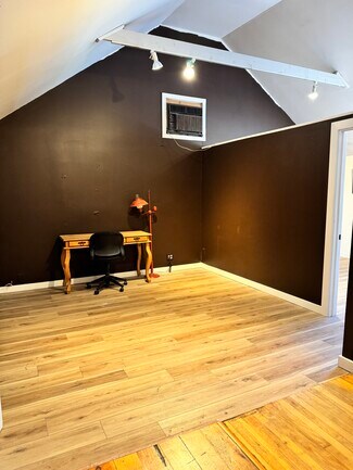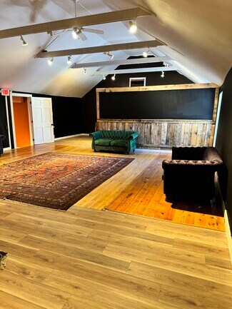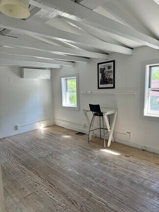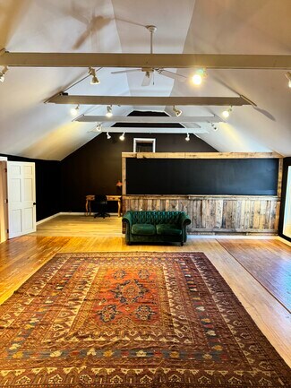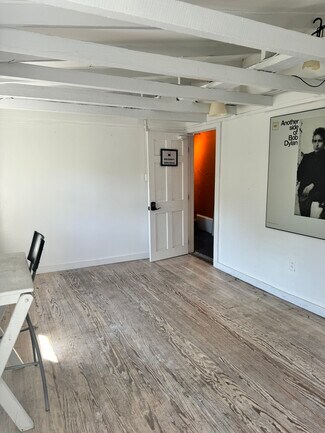 This second-floor office or studio has a prime location in the center of Woodstock above Happy Life. This includes two separate areas - the first is the room where Bob Dylan lived and wrote music. The second is a large open-concept space with a partitioned area for an office or closed storage.
