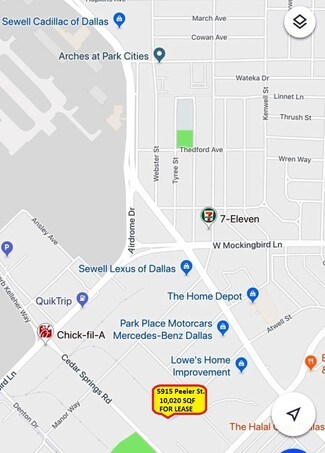 Great warehouse space for lease located in the affluent Park Cities automotive industrial neighborhood. This property is two adjoined buildings B&C (3,900 SF & 6,120 SF) connected by a doorway which could be split. Industrial Research (IR) zoning allows for several commercial uses.