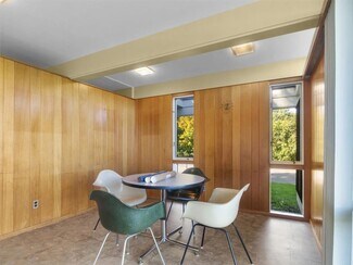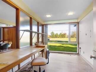 Noticeable and notable, this mid-century modern commercial building sits in a visible location overlooking the Ontario Golf Club. Formerly a Medical office, this property offers a layout that can be adapted to a variety of uses: continued health related office, other professional offices, child care, or another commercial opportunity. The two levels of the interior floor plan offer multiple exam rooms/offices, reception areas, waiting room, private work space, lab, utility, and rest rooms. With the flexibility to meet your business’ vision, imagine working in a locally designed building with clean lines and an abundance of first floor natural light. The one acre (plus) lot provides ample parking. With curb appeal like no other locally, this architectural gem offers your business a unique statement while being both practical and inviting.
