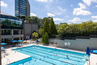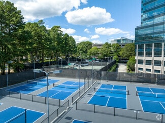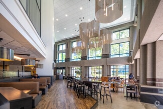 Amenities within the two buildings include cafés, restaurants, indoor and outdoor community spaces, Wi-Fi-equipped and electrified connected spaces, convenience shops, a shoeshine, a newsstand, a coffee shop, a conference center, and a parking garage with auto detailing services. The campus prioritizes health and wellness with 2 miles of trails and the Concourse Athletic Club, which features an indoor track, tennis courts, indoor and outdoor pools, a basketball court, spa services, tennis, pickleball, and more. Organizations receive access to a wealth of services on top of the physical amenities with social events, discounted tickets, tenant appreciation events, fun charity drives, and more. There is also a KinderCare and a 372-room newly renovated Westin hotel on the campus with amenities for out-of-town visitors.