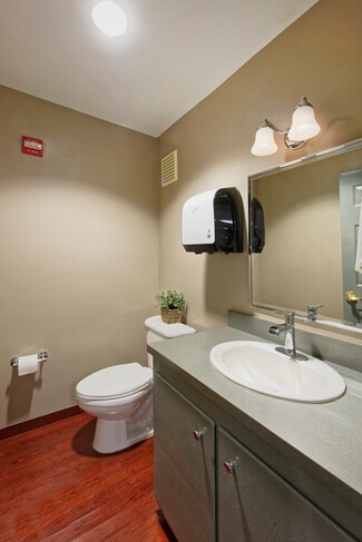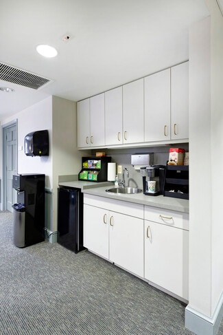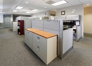 • Two-story layout with private offices, open work areas, conference rooms, three half baths, a supply/copy room, coffee station, and large break room.