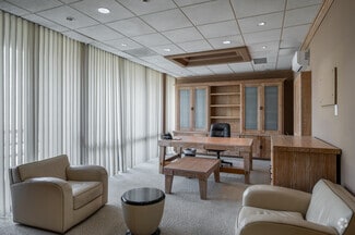 The campus includes a total of 22 private offices, each equipped with individual heating and air conditioning units to ensure comfort and efficiency. Across both buildings, the interiors are extensively upgraded and designed to meet the demands of modern business operations. Features include multiple executive offices, dedicated break rooms, ample storage, and his and hers restrooms. Executive-level touches include a private bathroom, a cigar humidor, and a 240-bottle wine locker.