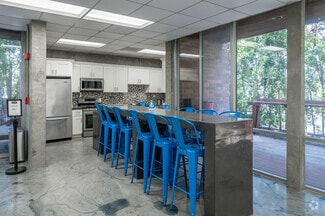 Both buildings are outfitted with high-end kitchens featuring KitchenAid and Samsung appliances, as well as washer/dryer units. Outdoor patios, putting greens, televisions, and power outlets create excellent spaces for entertaining clients or providing employees with space to relax and recharge.