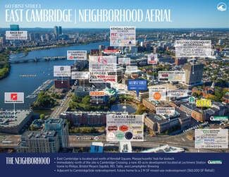 Immediately north of the site is Cambridge Crossing, a new 43-acre development located at Lechmere Station home to Philips, Bristol Meyers Squibb, REI, Tatte, and Lamplighter Brewing