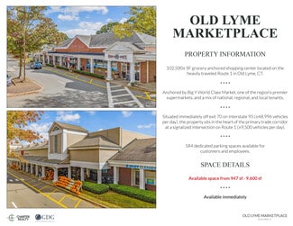 • 102,500± SF grocery anchored shopping center located on the heavily traveled Route 1 in Old Lyme, CT.