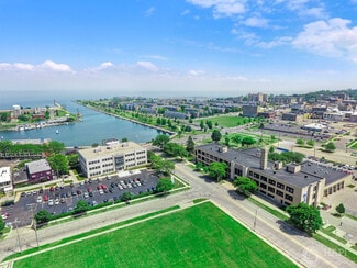 Lakefront Building! Pristine office space and pristine location! Professional, secured, elevatored office building on the corner of 52nd St and 6th Ave, downtown Kenosha. Private parking lot. Close to courthouse, train station, municipal building, downtown businesses and restaurants. (2) suites available, 1559 sf suite includes 4 private offices plus a conference room, kitchenette and printer area and 3126 sf modern office. If you want to level up your office space, this would be it!