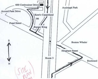Visibilty and access from Route 3 are exceptional from its location in Accord Park. Convenient access to nearby lodging, restaurants, and retail amenities. 40-acre campus-like setting. Lobby features include arched, tinted-glass entryway. Interior offices overlook three-story atrium. Heat pump HVAC. Open, center stairway to second level. Marble accents throughout. 273 parking spaces; 32 executive spaces. Basement storage available. 600 Cordwainer Dr. is located just off Route 3 at Exit 14.(Route 228). The immediate area offers three hotels, many restaurants, day care, banks, fitness clubs and more.