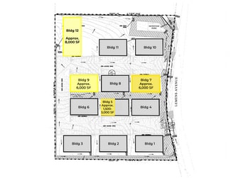 Twelve Building Industrial Park with Concrete Parking; Single-phase only. - Building 7: 6,000 SF, all HVAC building with spray foam. 600 Amps. Single phase with 3 phase converter. Reception, two offices, break area, and 3 restrooms. Portion of the building is decked for additional storage. Racks available to stay. - Building 9: 6,000 SF, approx. 600 SF HVAC office/restrooms in property. 60' wide x 100' long. Available Now. - Building 12: 8,000 SF, approx. 600 SF HVAC office/restrooms in property. 16' eve height. Building will have approx. 8,000 SF yard. Available Now. - Suite 520 and Suite 530: 1,500 SF each, HVAC, can be combined for 3,000 SF. Available June 1, 2026.