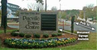 A flex building facing Polk Street (South Blvd. extended) in Pineville. Close to I-485 and Carolina Place Mall, Pineville Towne Centre has office/warehouse suites with drive-in doors in the rear. There are also road frontage retail spaces, along the front of the building.