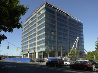 • The building features impressive space with thoughtful amenities including a large parking garage, an outdoor terrace, cafe, and fitness center.